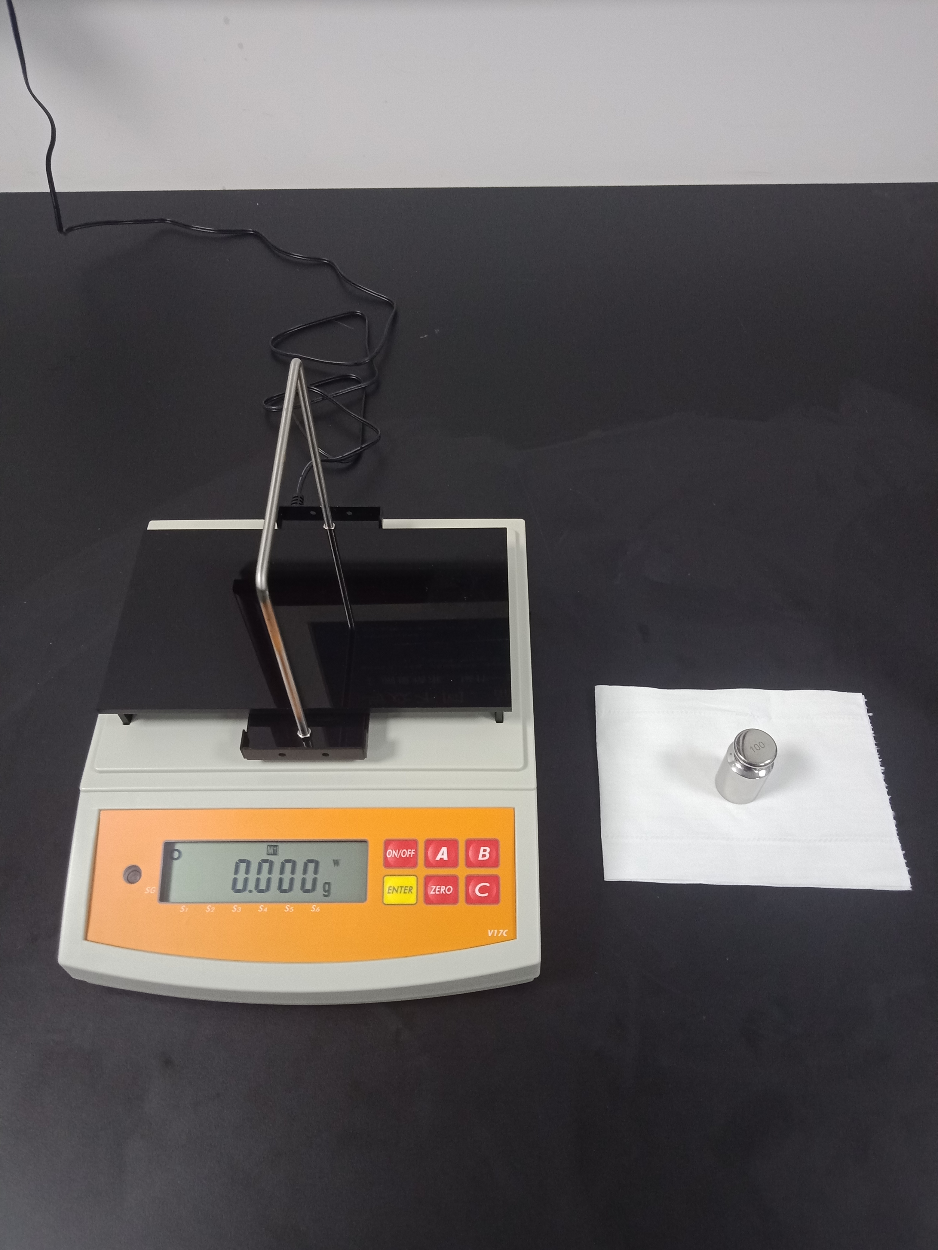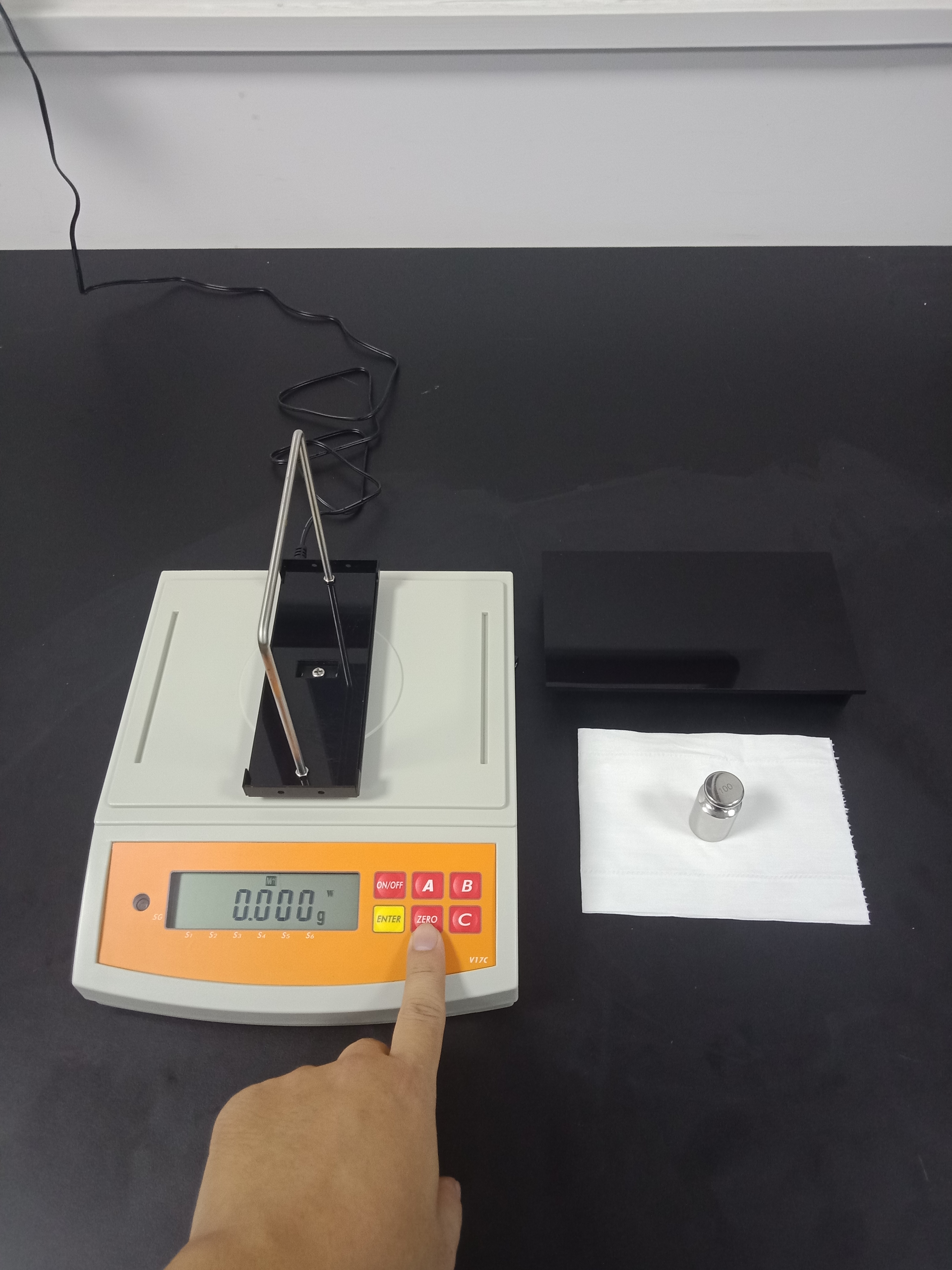 安裝好儀器并準備好100g標準重量砝碼1個,如下圖