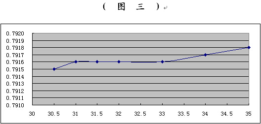 結(jié)論:溫度對甲醇密度測定的影響是非常大的。在標準規(guī)定的范圍內(nèi)同一試樣的密度基本上呈直線,溫度過低及溫度過高時則偏離此直線。一般要求測定的溫度是15-35℃,但是甲醇的揮發(fā)點比較低,所以平時測量時溫度不宜太高,一般保持在20℃左右,環(huán)境溫度變化應(yīng)不大于±2℃,記錄溫度變化接近到0.1℃。