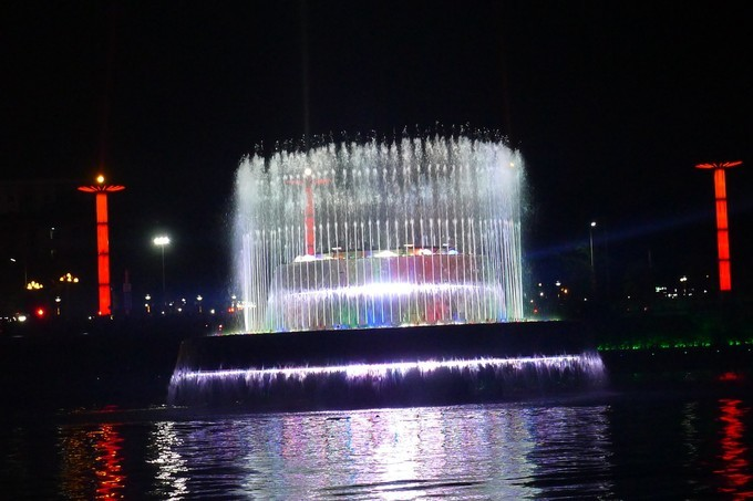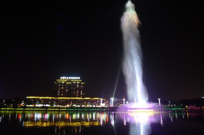到了晚上,在經過短暫到休息和品嘗過河源地道的地方美食后,我們又到有亞洲第一高音樂噴泉之稱的新豐江音樂噴泉,觀看音樂噴泉演出,在歡快愉悅的樂曲中,通過直噴、水簾、水浪、水松、內拋、搖擺、編網等8種水型,不斷組合成數十個變幻莫測、絢麗多姿的噴泉景觀,有似流金溢彩、火樹銀花,有如孔雀開屏、彩虹飲澗;是水的畫、燈的詩,給人以美的享受。