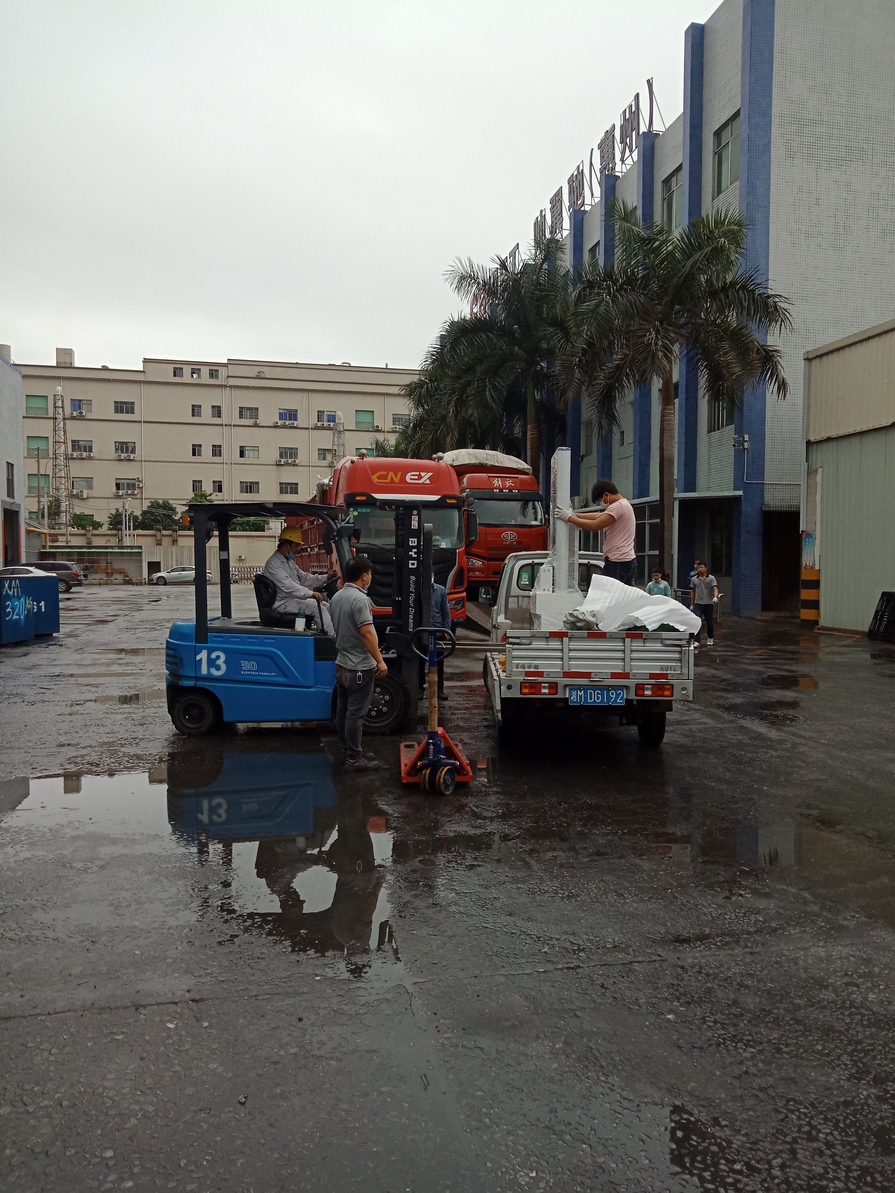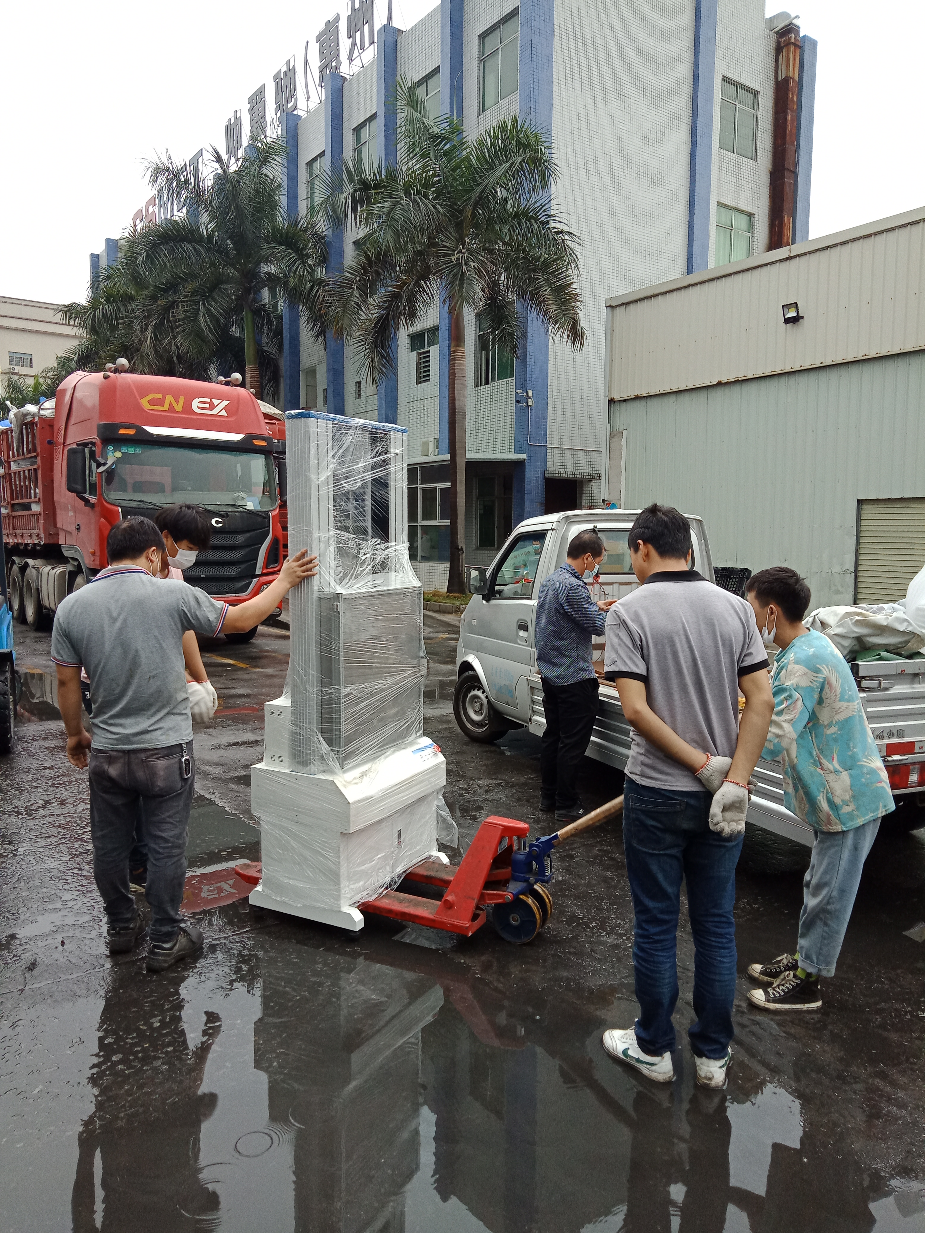 惠州帥翼馳員工正在從貨車上卸下HT-140SC-50型金屬拉力試驗機