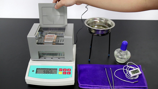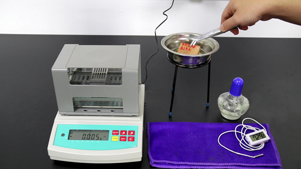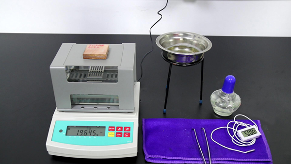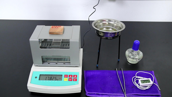 準備工具:木材密度測試儀DA-300CE,木材樣品,蠟水,酒精燈,架和不銹鋼碗。